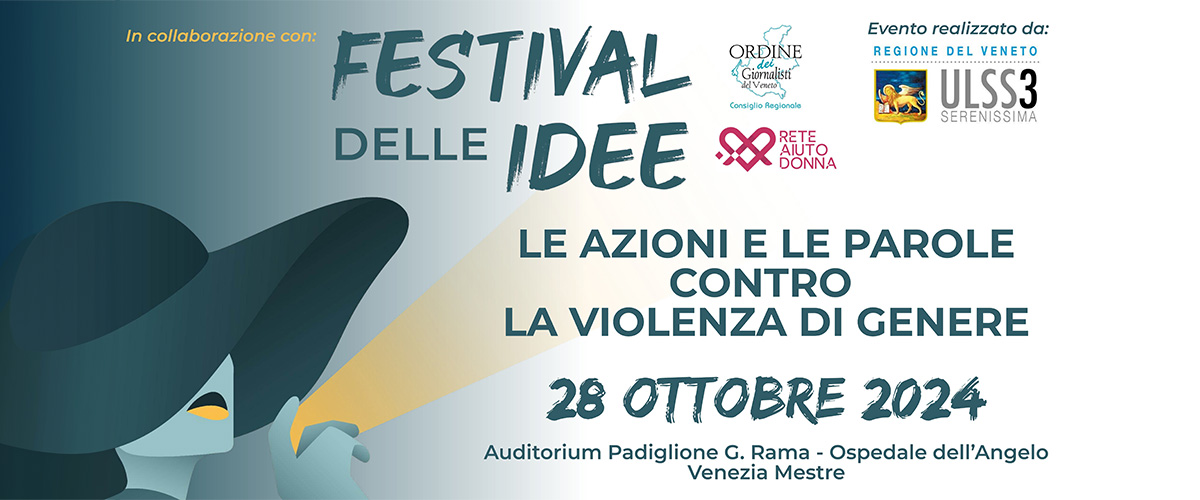 Lunedì 28 ottobre 2024, nell'auditorium del Padiglione Rama - Ospedale dell'Angelo di Mestre, è in programma il convegno "Le azioni e le parole contro la violenza di genere", organizzato da Ulss 3 Serenissima, Ordine dei Giornalisti del Veneto, Rete Aiuto Donna nell'ambito del Festival delle Idee.